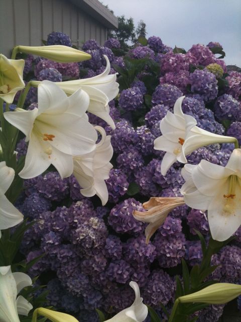 Note the Hydrangeas in the background. The parents love big flowers.