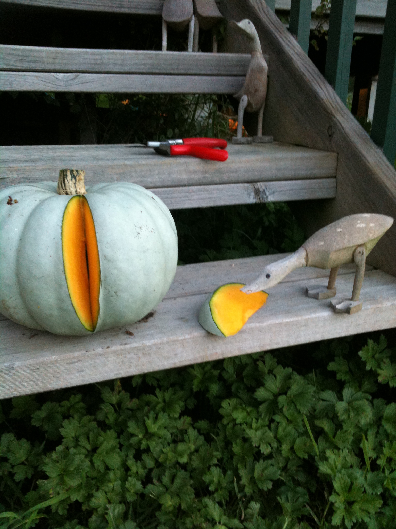 Pumpkin count 31 Whilst I only have one picture of the pumpkin harvest so far, the total count is 31 pumpkins. Hey watch out duck! A pumpkin Share this:TweetLike Loading... Related Bookmark the permalink.
