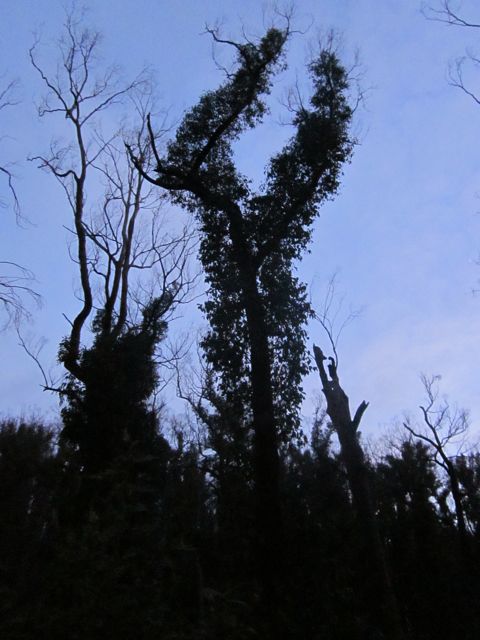 Below is the scene at first light from my survey site. Those burnt Eucalypts that are still alive have new leaf growth. Below these there are literally hundreds of thousands of new trees growing.