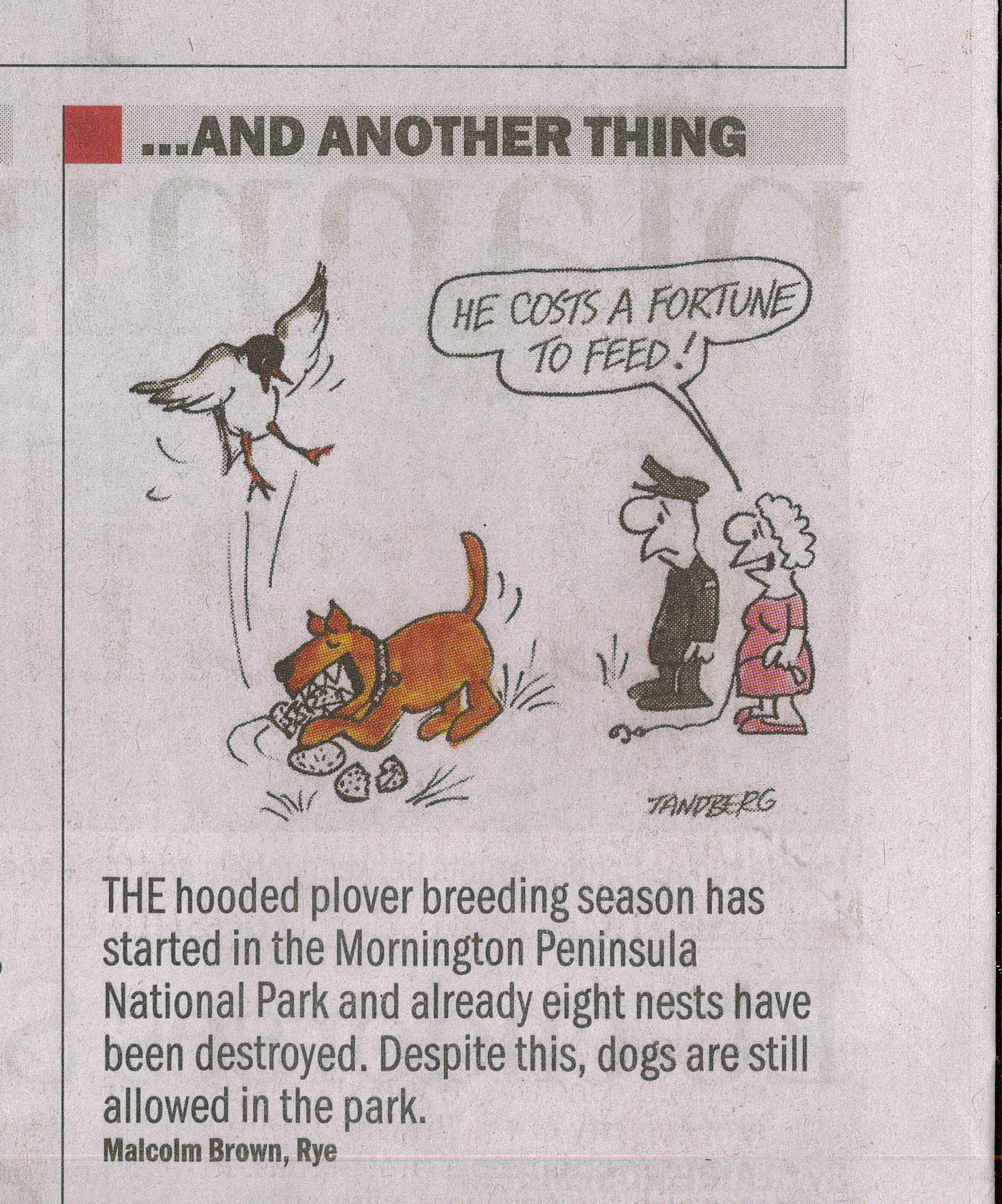 It has taken awhile but thankfully The Age has provided some press on the plight of Hooded Plovers in the Mornington Peninsula National Park.