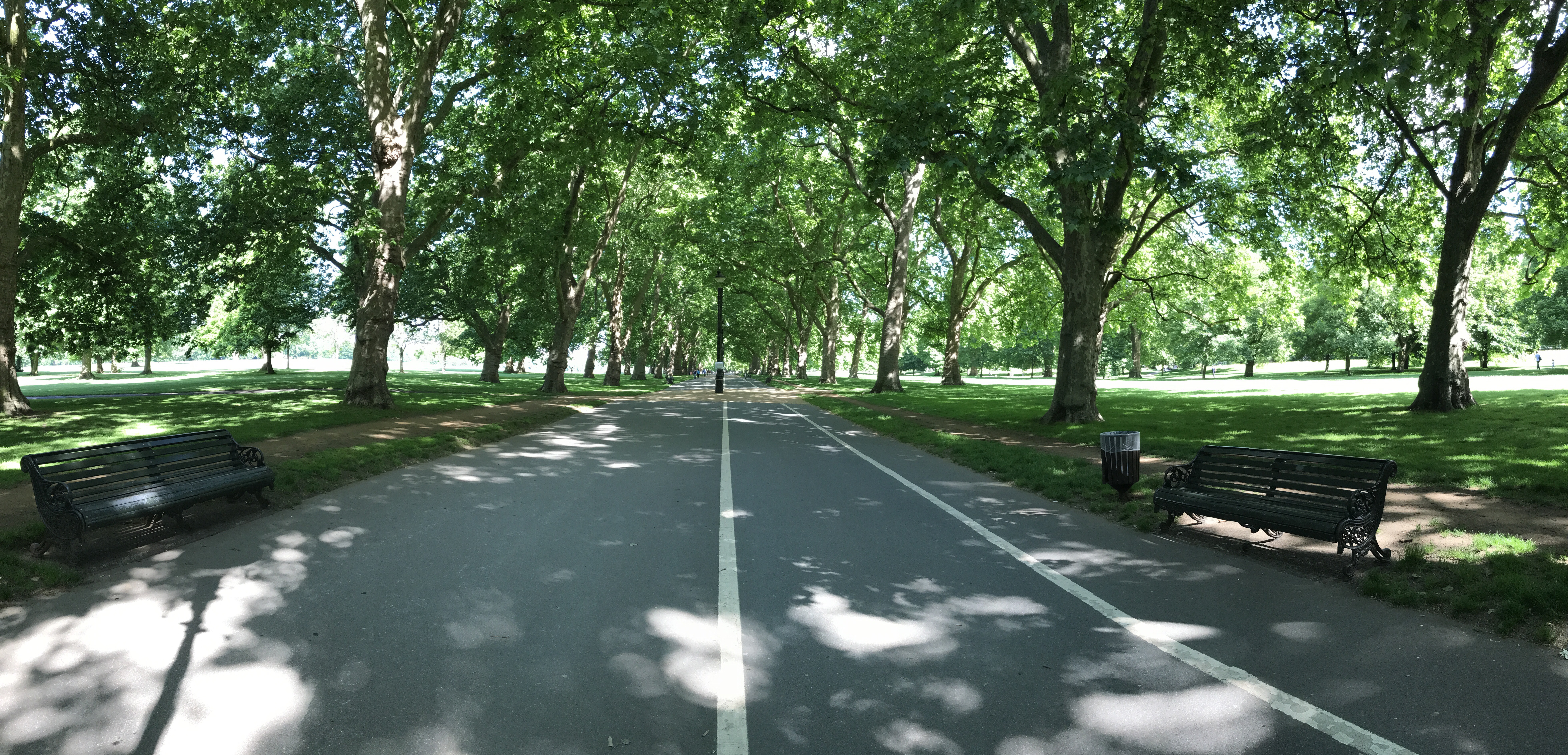 Hyde Park is rather large and today I virtually walked around it. There are expansive lawned areas and many old and large trees.